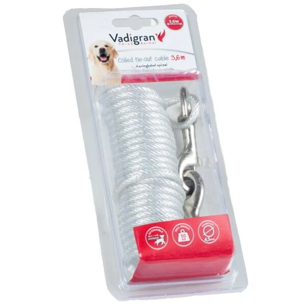De spiraalvormige, gegalvaniseerde kabel zorgt ervoor dat de poten van jouw hond niet verstrikt kunnen raken. De beschermende kunststof laag maakt de kabel stevig en duurzaam in gebruik.