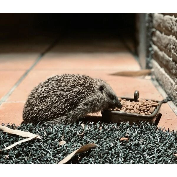 Plaats de eetkom met egelvoer dicht bij een locatie waar u een egel hebt gezien of naast een egelkast / egelhuis.