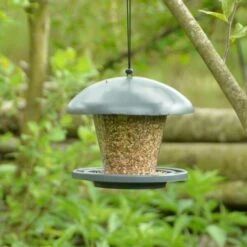 Deze kwalitatieve voedersilo kan met het voorziene ophangkoord aan een boom of dakrand worden gemonteerd. Zo zal je heel wat vogels naar jouw tuin lokken en zelf in een klein stadstuintje.