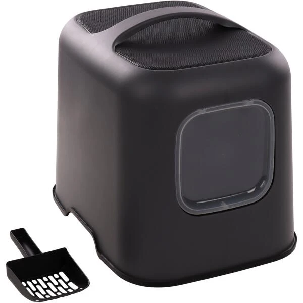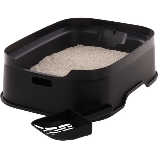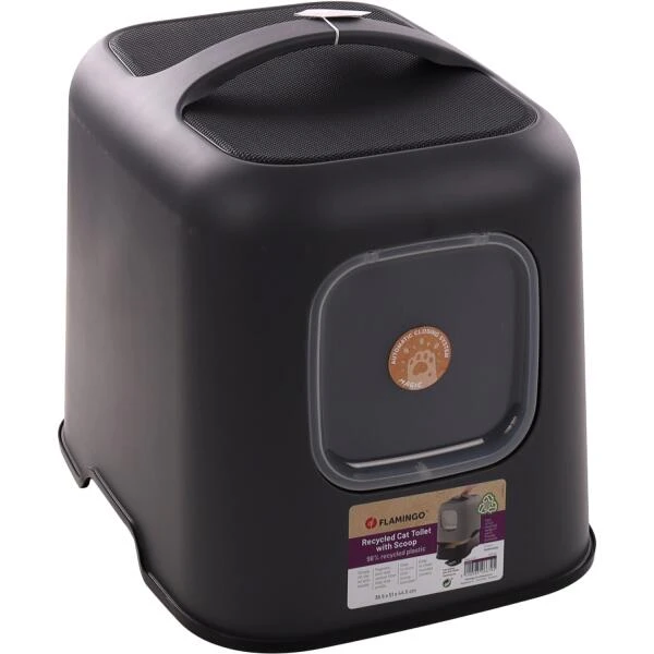 Het kattentoilet is gemaakt van 98% gerecycleerde kunststof en is makkelijk schoon te maken. Het deskel is afneembaar en voorzien van een handvat zodat je de kattenbak makkelijk kunt verplaatsen. Onderaan zijn er ook inkepingen voorzien. Een kattenbakschep wordt meegeleverd.