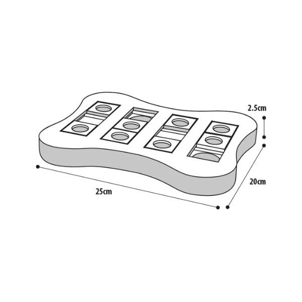 Leg de brokjes in een vakje en schuif het vakje dicht. De hond kan vervolgens op zoek gaan naar zijn brokjes aan de hand van zijn reukzin en het juiste vakje open schuiven met zijn poot.