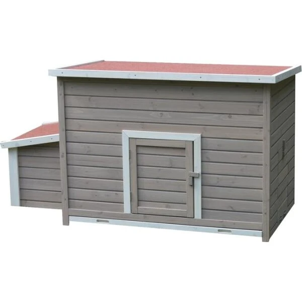 Kippenhok Fiona is een ideaal hok om in een kippenpark te plaatsen. Zowel het hok als het legnest hebben een dak in rood dakleer en het beschikt over een mestlade.