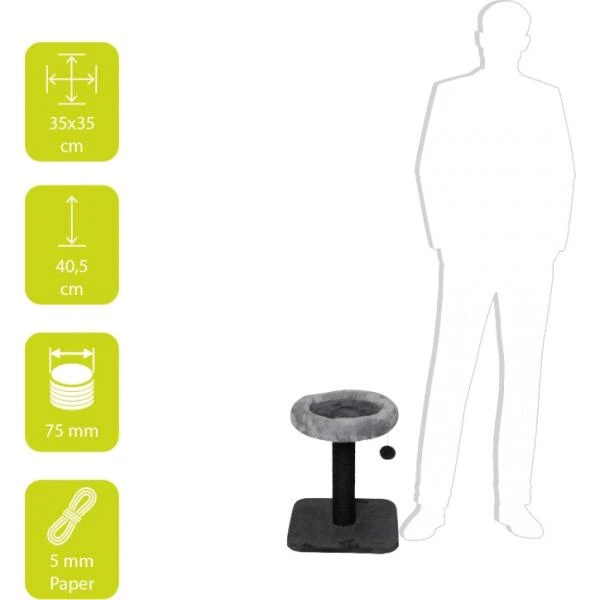 De ligplaats is heerlijk zacht en bedekt met pluche. Aan de onderzijde van de ligmand hangt een speeltje, zo wordt je kat gestimuleerd om deze krabpaal uit te proberen.