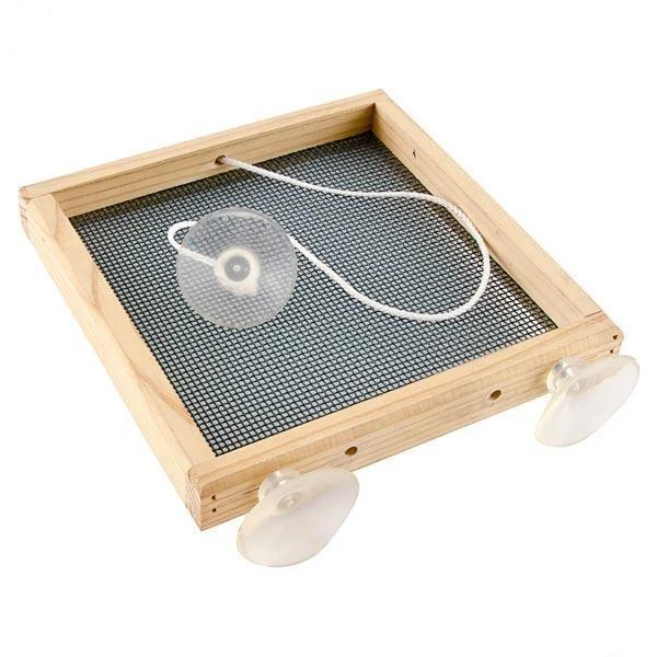 Een raamvoedertafel met zuignappen die het mogelijk maakt tuinvogels van dichtbij te bekijken. Het systeem is eenvoudig te bevestigen en makkelijk bij te voeren.