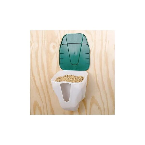 Deze innovatieve voederbak is gemaakt van onrbreekbare kunststof en kan met de meegeleverde beugel makkelijk worden opgehangen aan een wand.